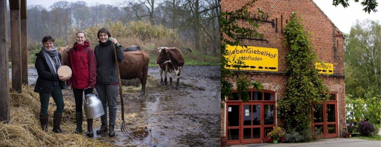 Auf dem Demeter-Hof von Ve-Annissa Spindler vom Siebengiebelhof in Drenkow in Mecklenburg-Vorpommern wird ausschließlich Rohmilch aus eigener Herstellung verarbeitet. Dabei strebt die junge Landwirtin und ihr Team eine Kreislaufwirtschaft an. In der hofeigenen Käserei wird die Milch der behörnten Kühe zu Rohmilchkäse, Quark und Joghurt ohne künstliche Zusätze und in Demeter-Qualität verarbeitet. Auf dem zur Hälfte in Weideland und Ackerfläche aufgeteilten Hof wird das Futter für die Tiere nach bio-dynamischen Richtlinien selbst angebaut. Neben der Käserei gibt es einen Hofladen und das Café 7, die neben hofeigenen Produkten und Wurstspezialitäten aus der Region, selbstgebackenen Kuchen und Kaffee anbieten.